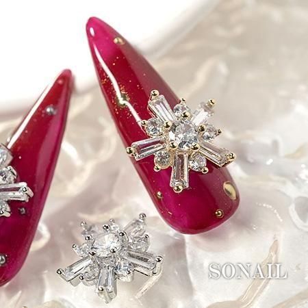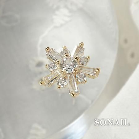 様々な形のクリスタルがを花状に組み合わせたデザイン。